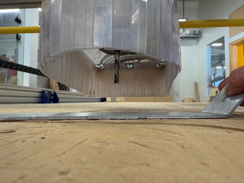 The program will ask you if the alligator clip is placed under the bit. Make sure it is! Then you follow the directions on the screen and hit the right button. The tool will move down and when the endmill touches the alligator clip, it will go up again. Note! The tool will repeat this process so keep the alligator clip until the endmill has lowered and touched the clip TWO TIMES!