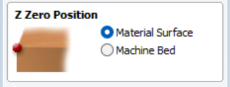 Afar mikilvægt er að stilla Z zero position rétt. Annars er hætta á að árekstur verði eða að fræsibiti brotni. Skoðið því vel hvort upphafspunktur á að vera á yfirborði efnisins eða á yfirborði ShopBot fræsivélarinnar. Hér er Z zero position stillt á yfirborð efnisins.