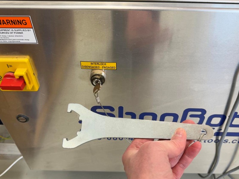 Notaðu skiptilykil og tólið sem var fest við ShopBotinn með lykli.