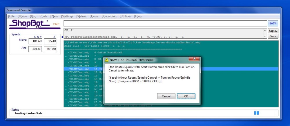 Að hita upp ShopBot fræsinn - Warmup routine
