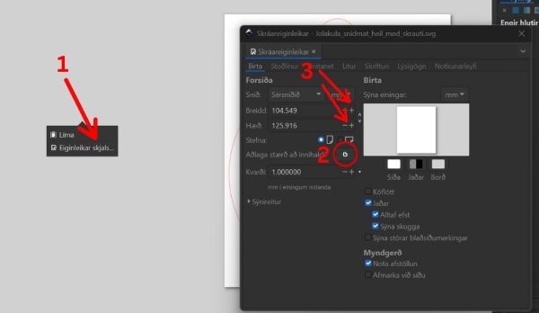 Til að nýta efnið vel er gott að stilla vinnusvæðið utan um hönnunina.