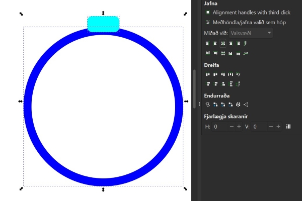 - Stilltu hringnum upp á ferhyrningnum og miðjaðu á lóðréttum ás (y-ás).