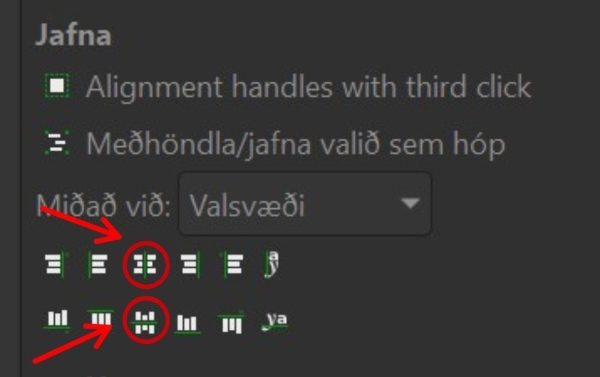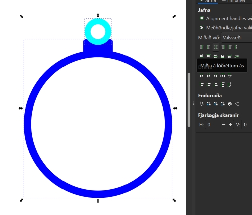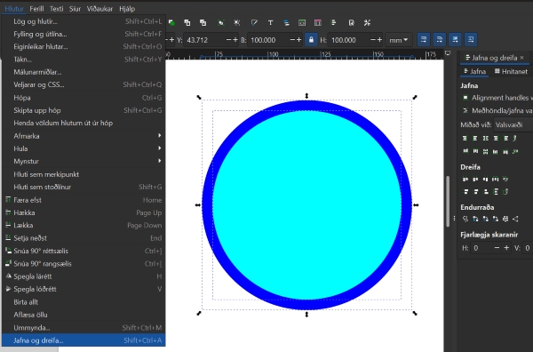 - Smelltu á Hlutur (Object) og svo Jafna og dreifa (Align and distribute).